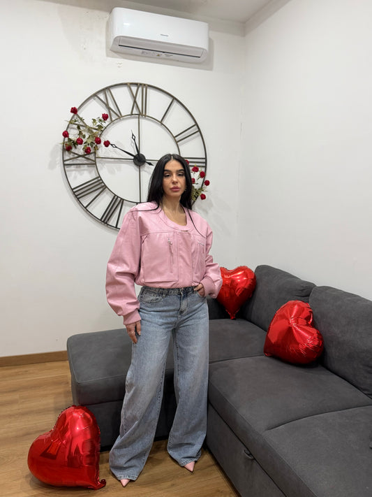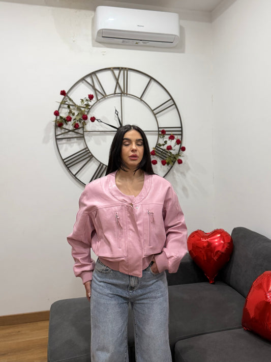 Bomber crop ecopelle Pink