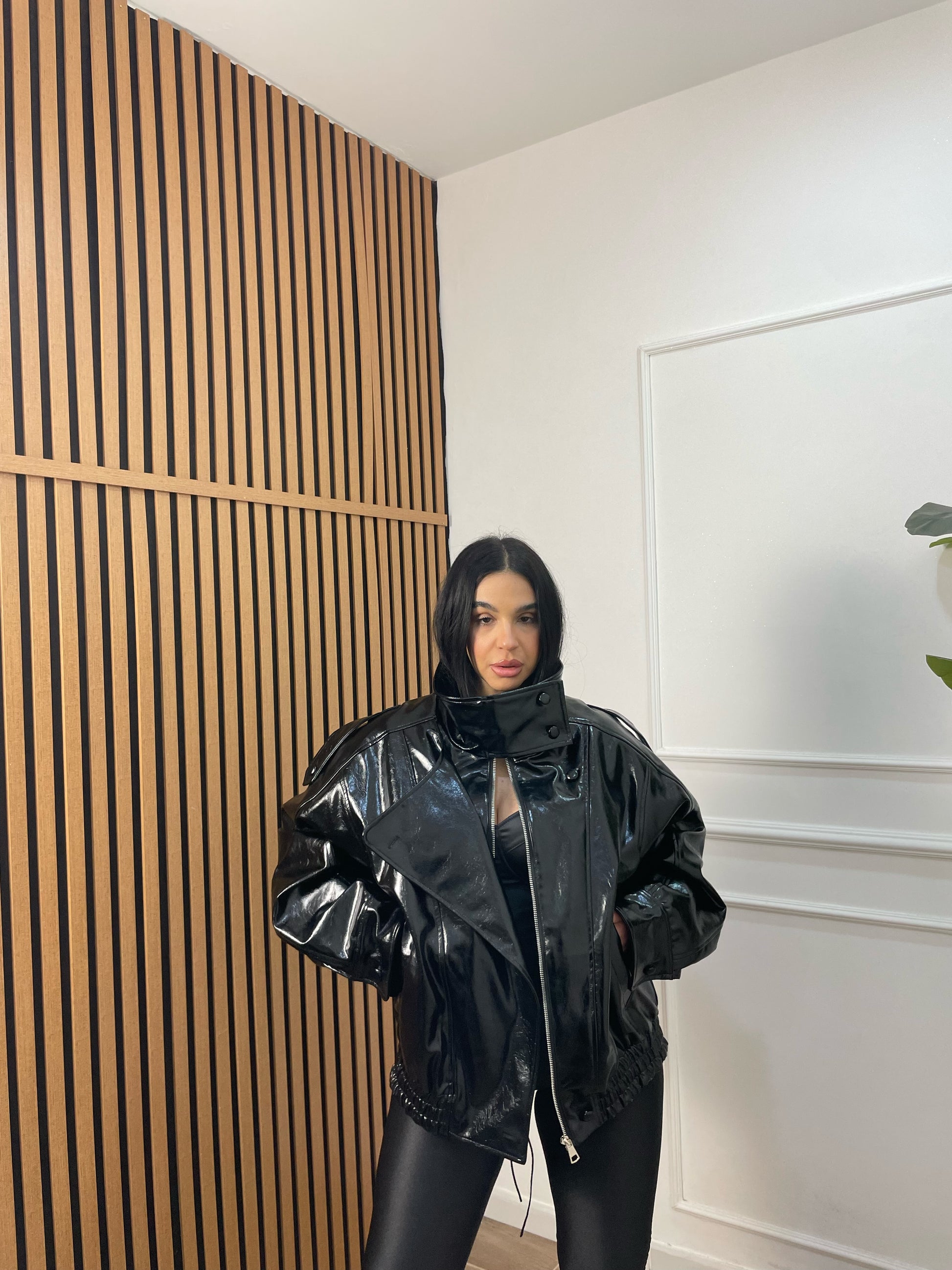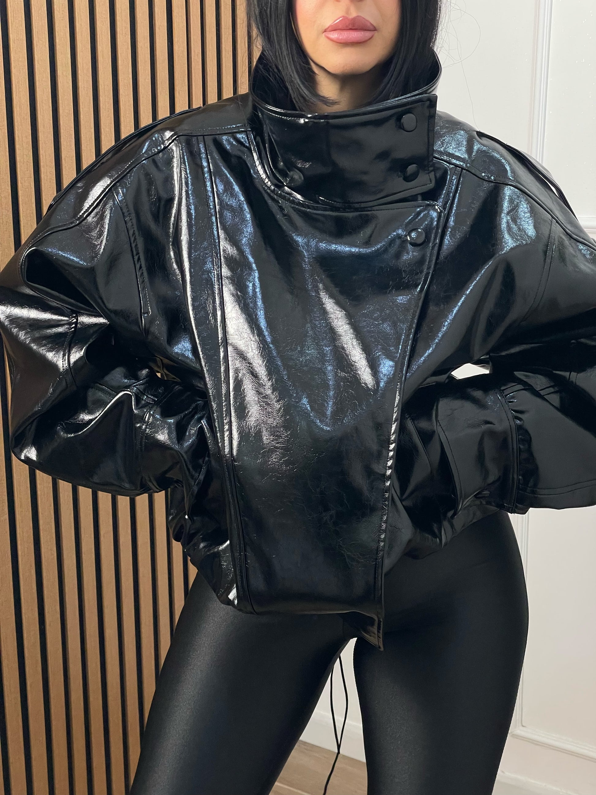 Bomber ecopelle collo alto